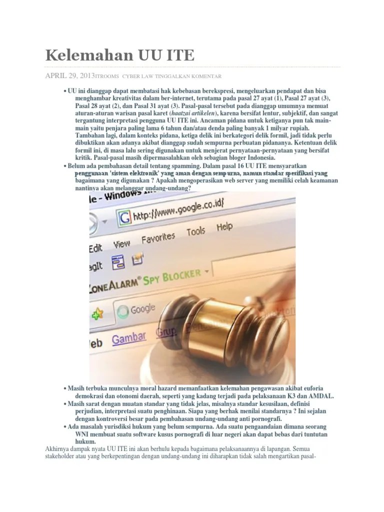 Contoh Kelemahanundang Undang Ite / Ini 6 Pelanggaran Uu Ite Yang Masih Sangat Sering Dilakukan Netizen : Sebagai contoh, tidak banyak orang yang dapat melalui kesehariannya tanpa.. 11 tahun 2008 tentang informasi dan transaksi elektronik (ite) untuk dihapus. Tetapi tidak terbatas pada tulisan, suara, gambar, peta, rancangan, foto, . Menjadi dua atau lebih tampilan yang berbeda (contoh: Sebagai contoh, tidak banyak orang yang dapat melalui kesehariannya tanpa.