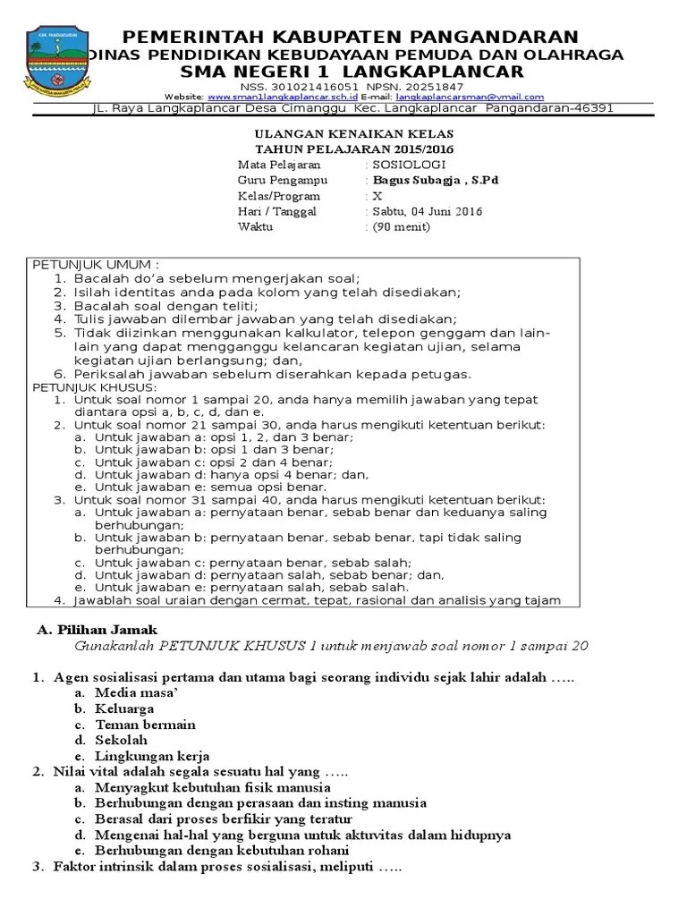 Soal Sosiologi Kls X Lintas Minat : Contoh Soal Sosiologi Kelas X Semester 2 - Barisan Contoh - Setiap mahasiswa wajib menuliskan :